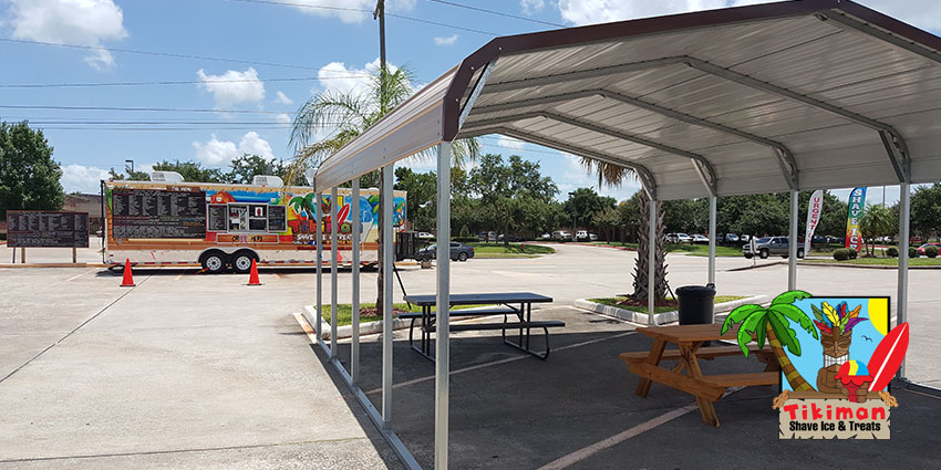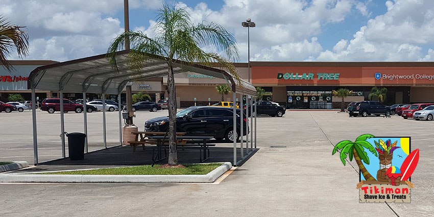 Even when it is scorching outside, you can come in and sit under our nice shade and enjoy Tikiman Shave Ice and Treats!